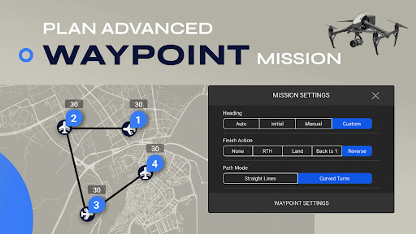 + Waypoint: Whether you're a pro or a beginner, Go Fly for DJI offers the most intuitive yet powerful waypoint mission tool (Phantom series)
