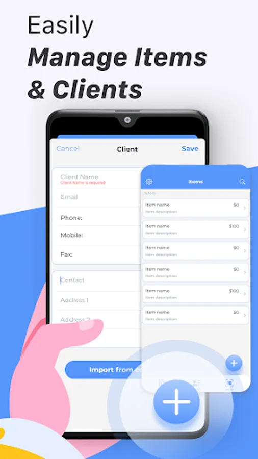 - Quickly Save your Client List & Add them into your Invoice/ Estimate just via a tap.