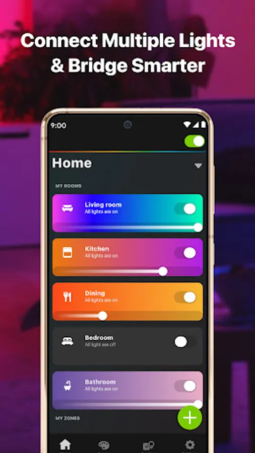 Connect your lights easily simply adding your Hue Light & Bridge devices and ready it will be ready to use in quick seconds. After sucessfully adding your device, you can organise by selecting rooms & zones the way you want, and start using - add up to 50+ lights.