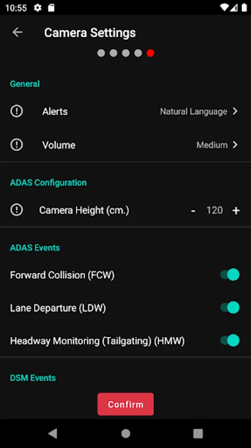 Complete the short onboarding process to establish your device’s primary settings, like camera configuration and ADAS and DSM event enablement. Customize your device to fit your fleet’s unique requirements without going through a highly technical, difficult-to-understand configuration process.