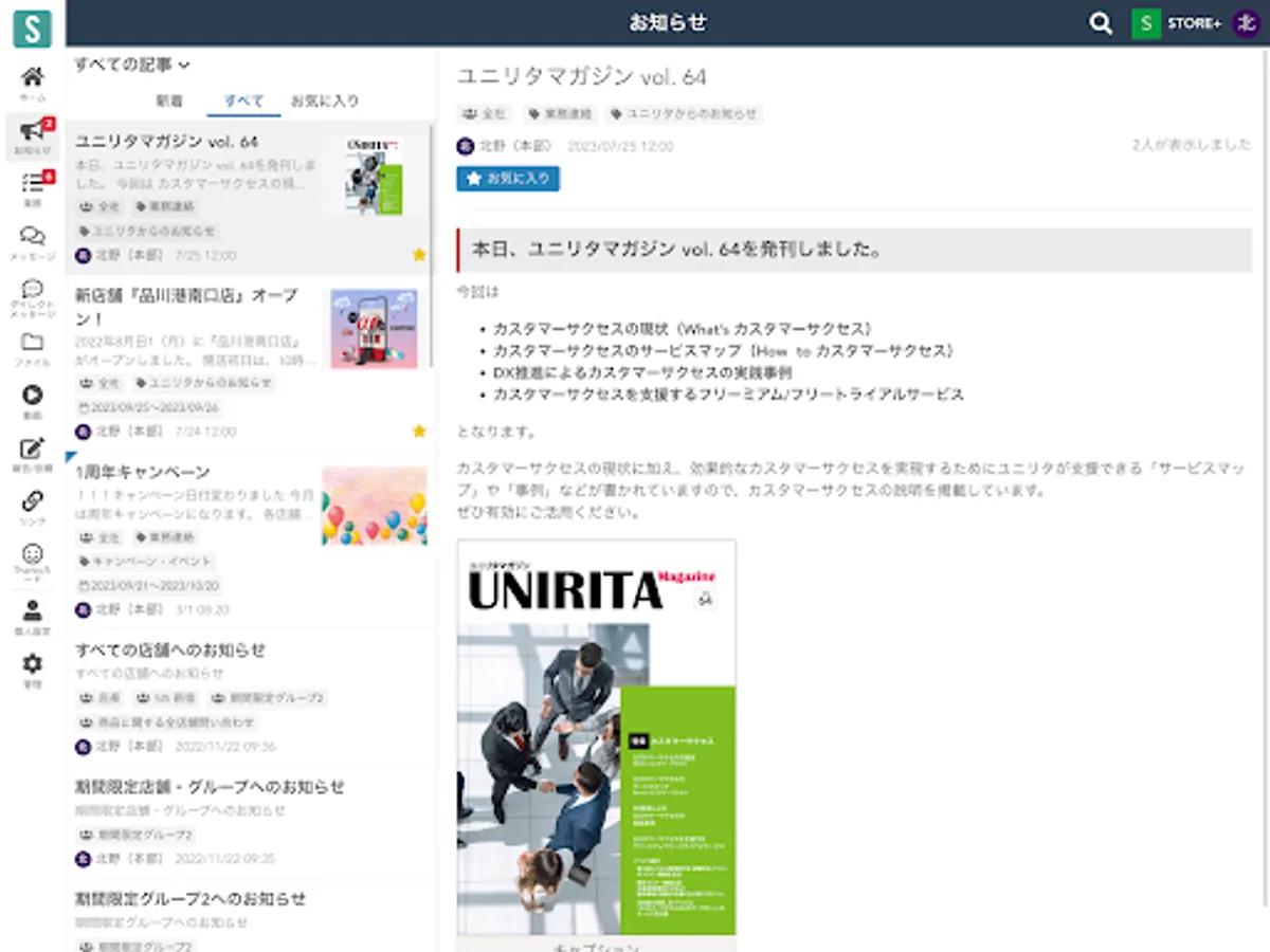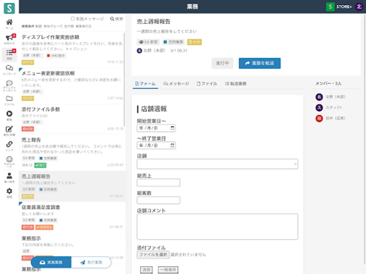 This frees you from paper and e-mail transmission and greatly reduces man-hours. Information sharing is also easy.