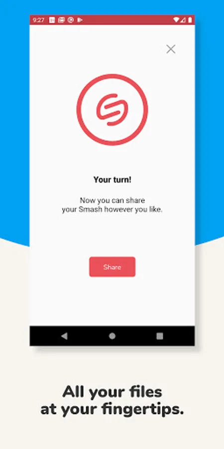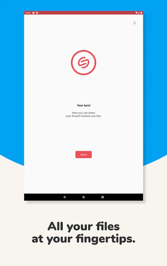 Download now the Smash app, with no registration required and send the files of your choice. Your files keep their original quality and your last transfer is accessible at your fingertip.