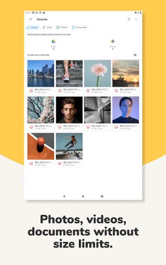 We offer you the possibility of sending your photos, videos, musics and documents easily, safely and freely from your mobile or your tablet.