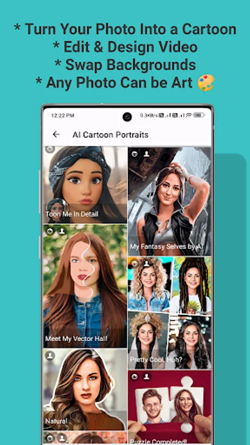 Turn your stylish selfies into unique fantastic art pics similar to great painters like Van Gogh, Picasso, Monet and Dali through an amazing ArtistA painting photo editor. Create fantastic art pics, apply colorful art effects by using amazing photo editing and cartoon style photo edit.
