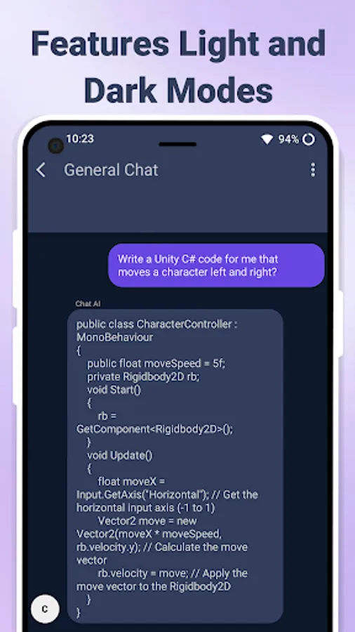 - The AI chat app also features Voice API, so the AI can read the messages to you.
