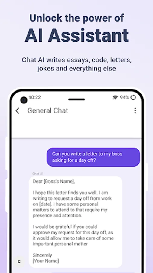 Get fast and intelligent responses with AI Assistant. The future is here with our AI chatbot PowerBrain. The AI chat app offers engaging and enjoyable conversations that can help you be more productive. Whether you're a professional, tech enthusiast, or need a personal AI assistant, then AI Chat & AI essay writer is the ideal solution for all your needs. Feeling overwhelmed with writing? AI Assistant: Writer is here to help! Our AI-powered writing assistant will help you create quality content quickly and efficiently. All you have to do is ask anything and AI Assistant: writer app will write it for you with lightning speed! Get ready to experience the power of artificial intelligence and unlock your creative potential with AI Assistant: Writer!