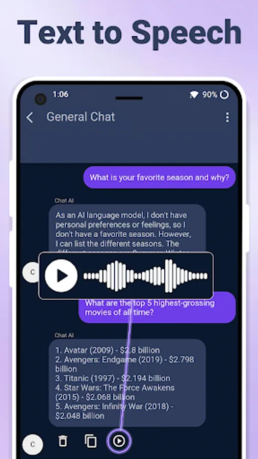 With an AI chat app & AI writing assistant, you'll always have a reliable chat partner through AI character chat to chat with AI and ask anything that can provide entertainment, advice, or just a listening ear. It even offers book and movie recommendations! Download the AI chatbot app now and have your virtual assistant always at hand.