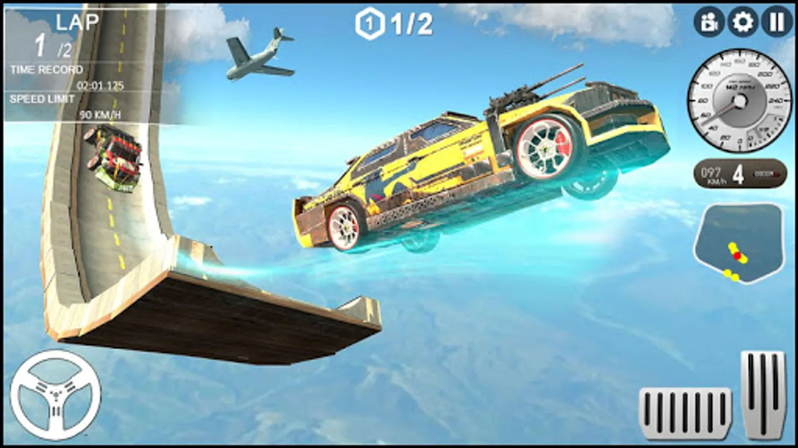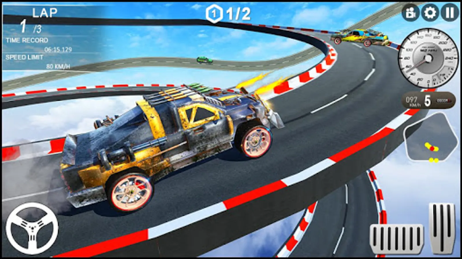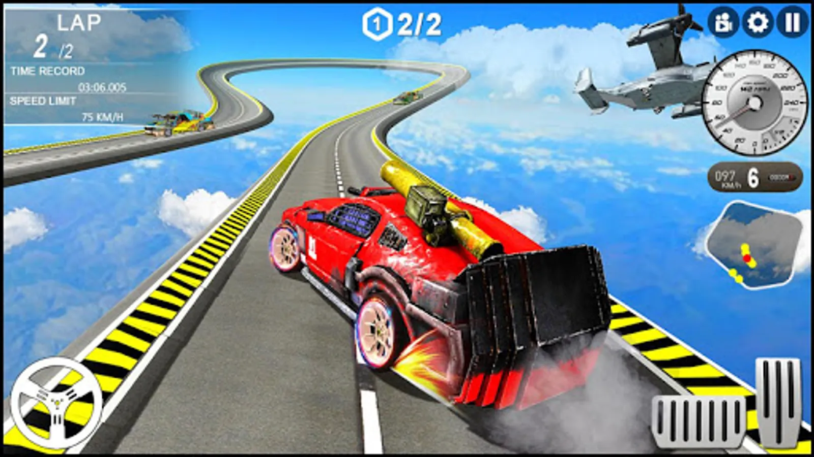 • Car racing on impossible sky tracks