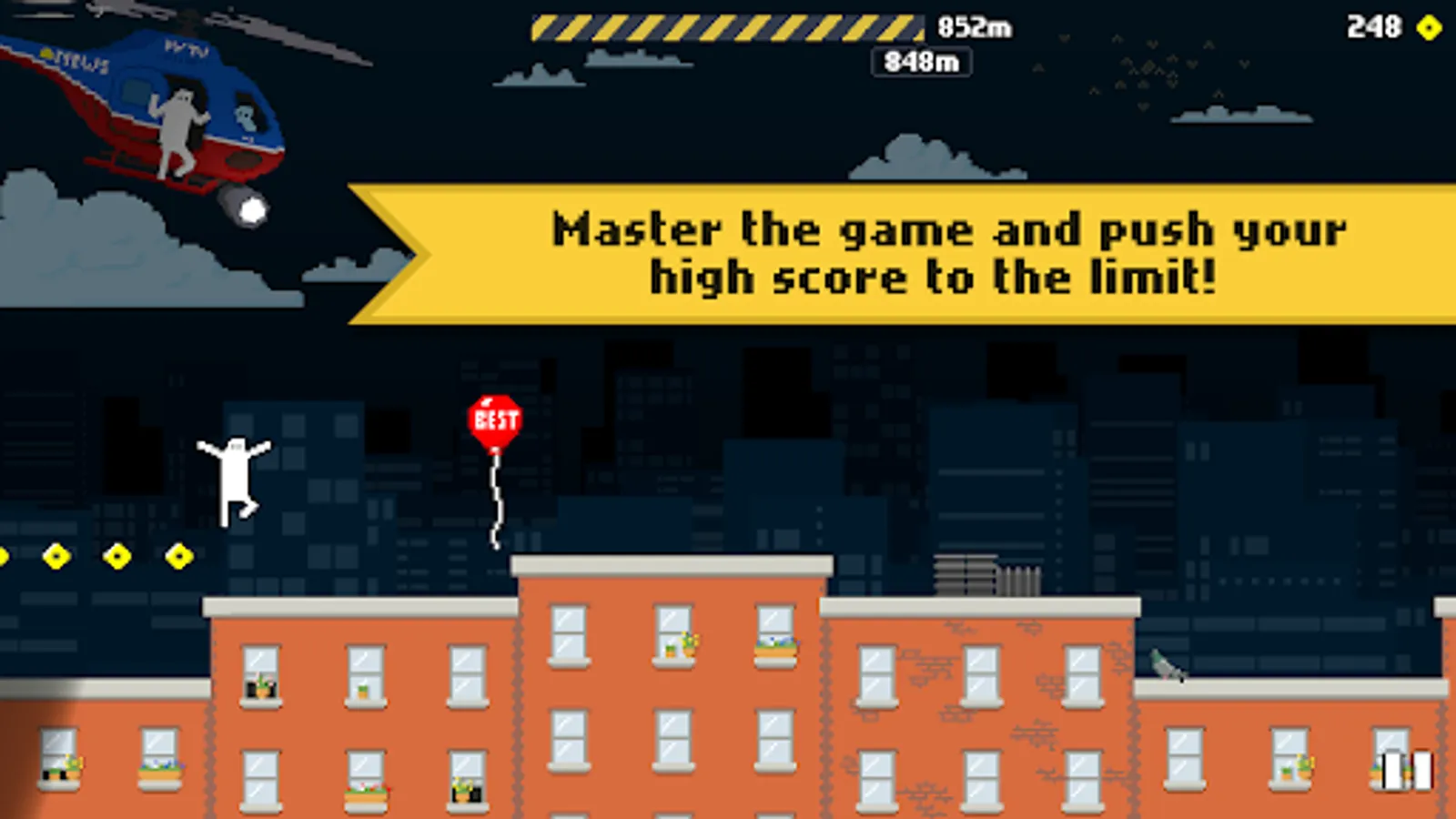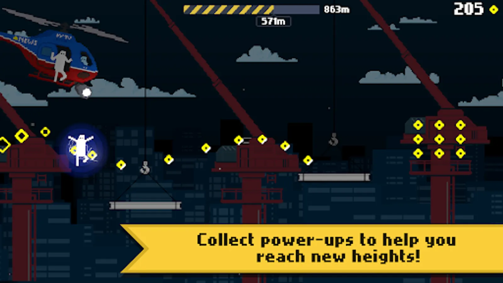 Collect power-ups to help you reach new heights as you compete against your friends on the leaderboards to see who can run the farthest!