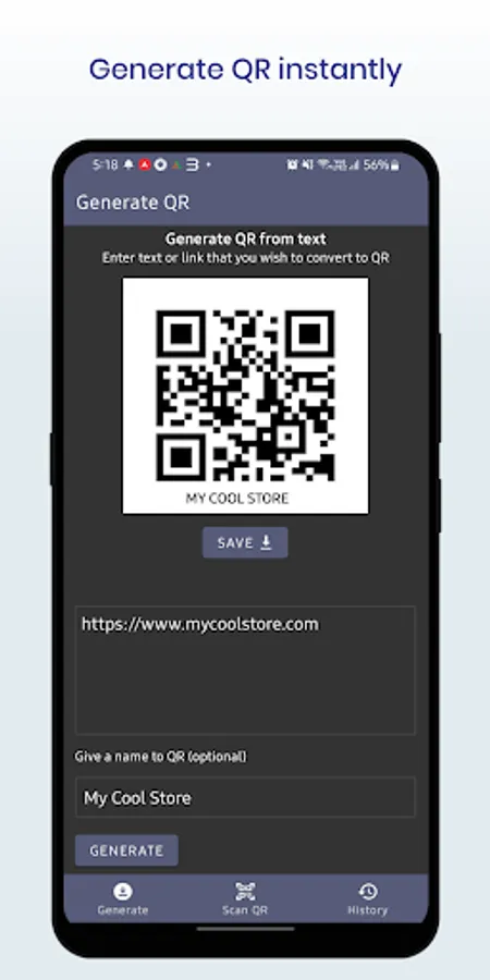 QR Scanner & Generator is a free to use utility which can be used to scan and generate QR codes on the go. You can save the generated QR Codes on your phone.