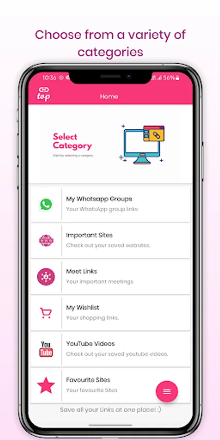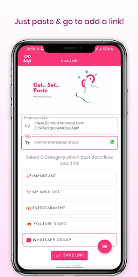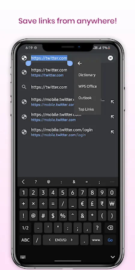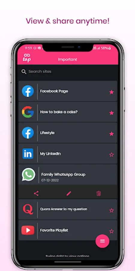 1. Copy/Share link from anywhere on your phone directly to the Top Links app.