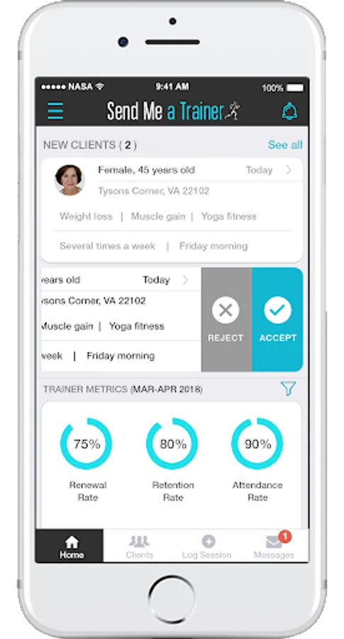 Send Me a Trainer makes it easy to get access to new clients in your area. All you have to do is download the free app, create a quick profile and immediately have access to new clients. Train when you want, be your own boss and make good money. Now you can focus on training and not worry about where you're going to find your next client.