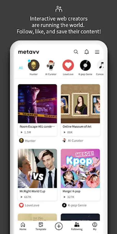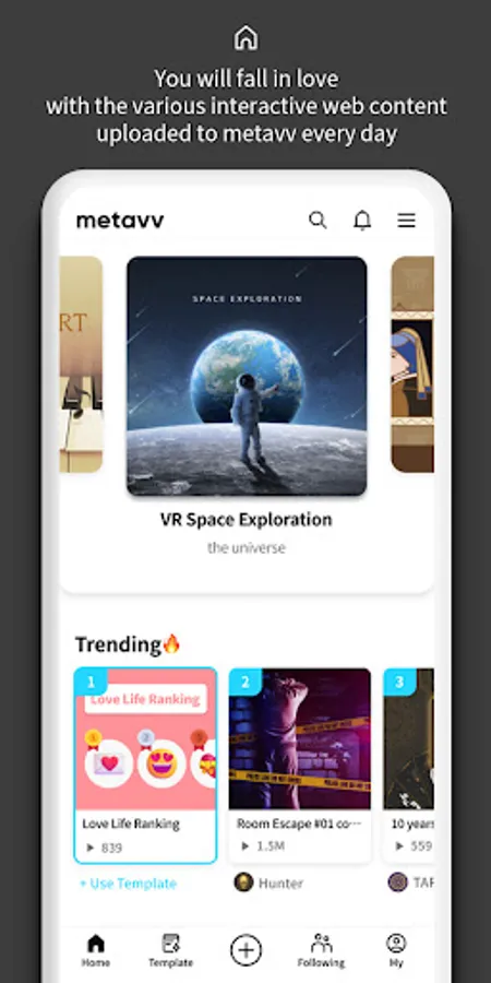- Use Template : We make it easy for you to create your own original interactive content by providing easy-to use templates. metavv templates bring you a new way to create and discover entertaining short content. Share with friends, family and the world.