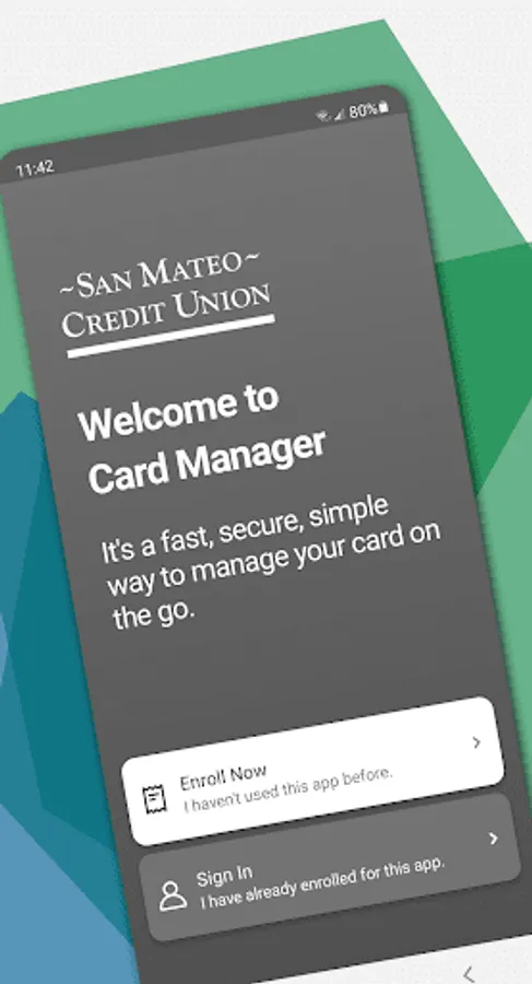 Easily and securely manage your San Mateo Credit Union credit and debit cards anytime, anywhere with the SMCU Card Manager app. Once the Card Manager app is downloaded, you will create a new username and password. You can also access the Card Manager app via our SMCU Mobile Banking app for a one stop area to manage your cards. Just click on the Card Manager widget to get started.