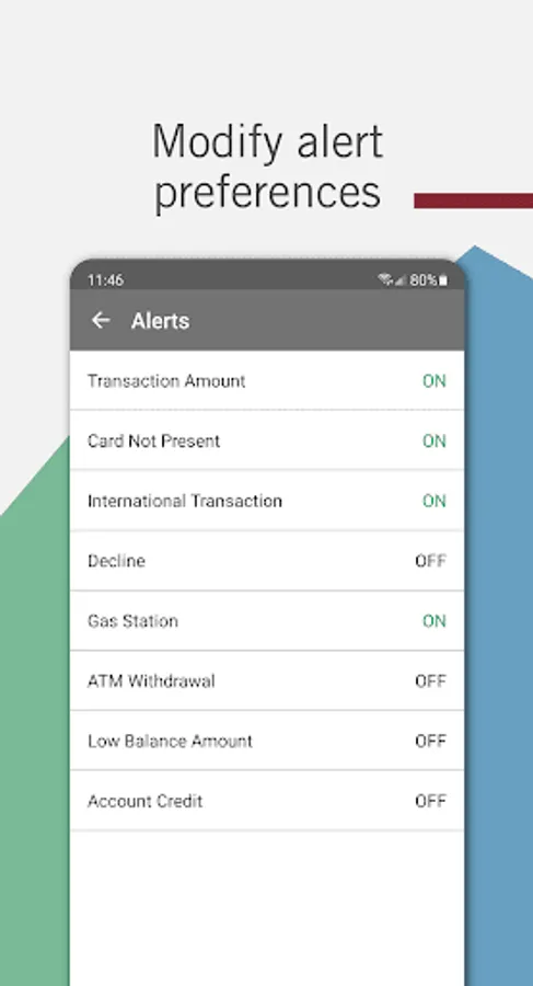 •Control and safeguard your cards by blocking and unblocking usage as needed.