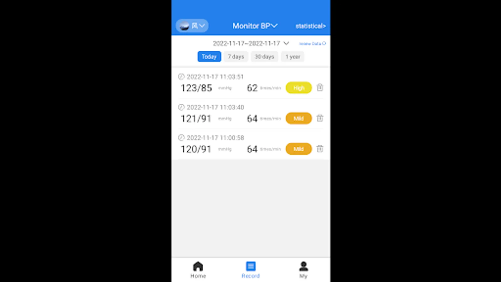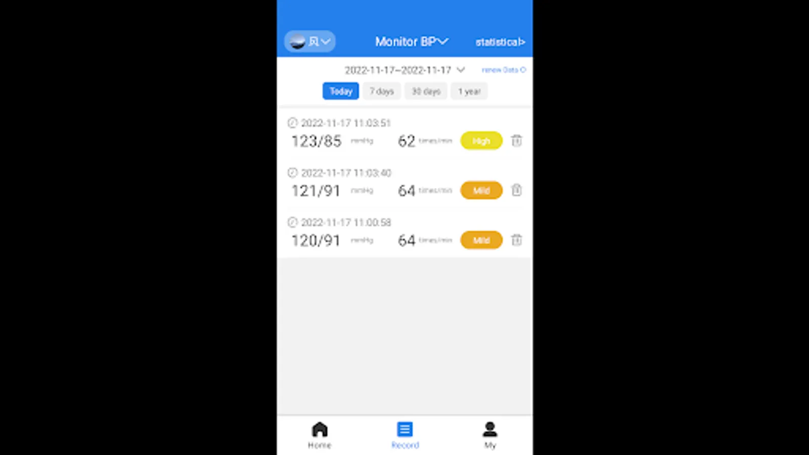 Simultaneously receive measurement data from paired blood pressure products or our other products with Bluetooth transmission data, and store, manage and do trend analysis of data according to user classification, and data can be shared to complete data output.