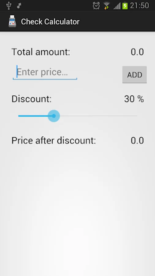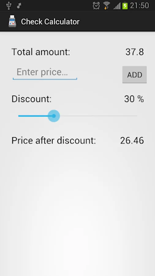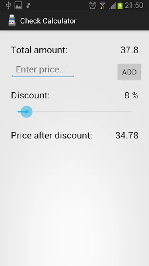 Simple and easy to use, Check Calculator is the perfect application to use when calculating your total price including discount or tip.