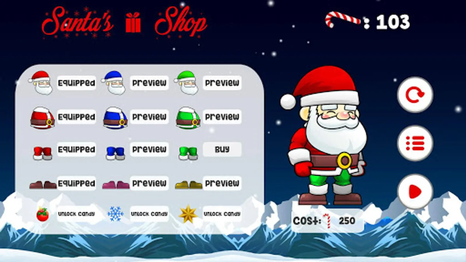 Help Santa Claus collect candy, customize his clothes and send exciting presents to your friends!