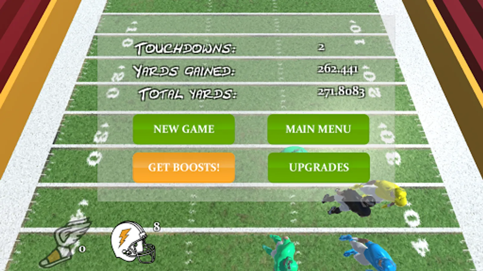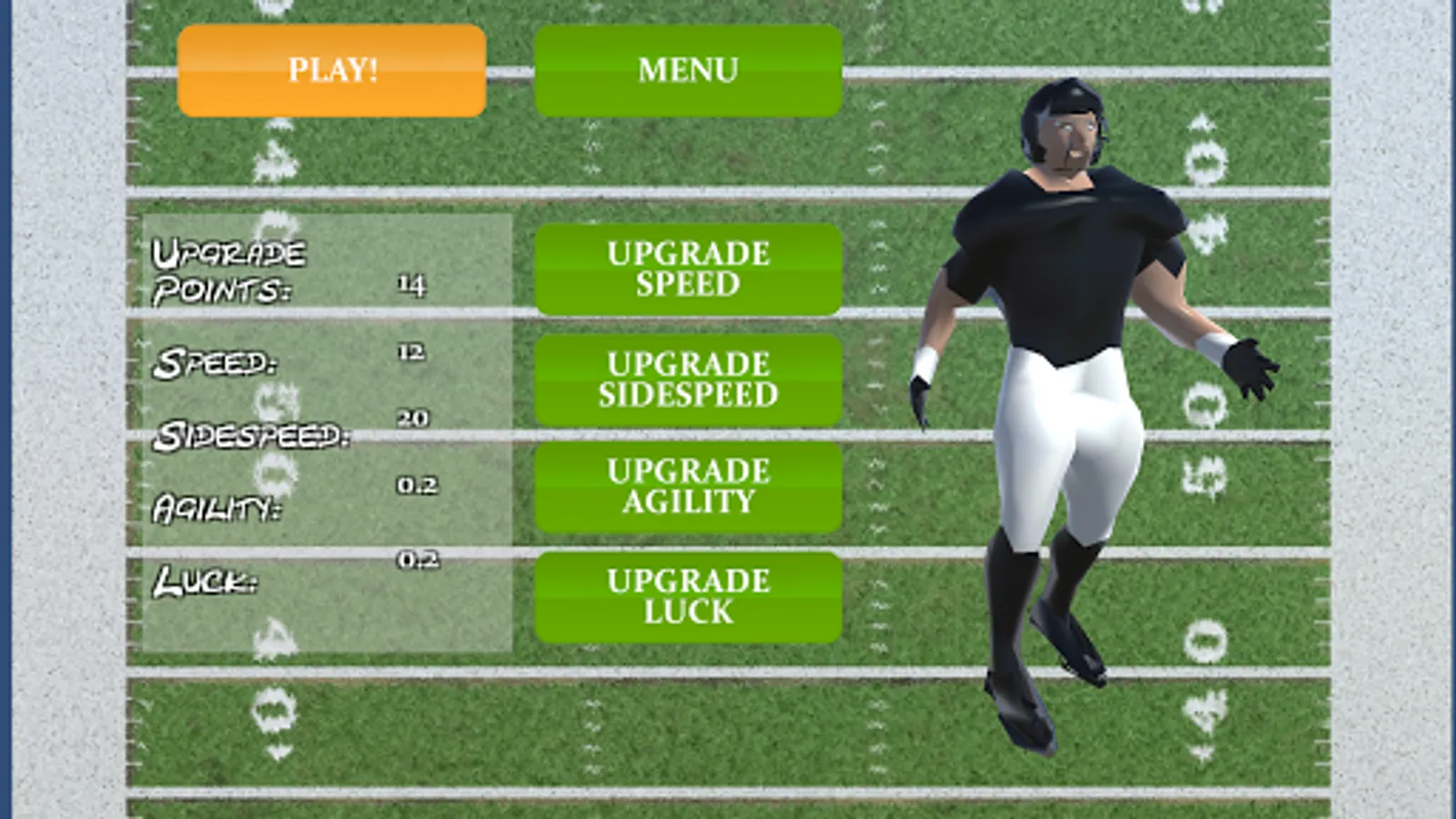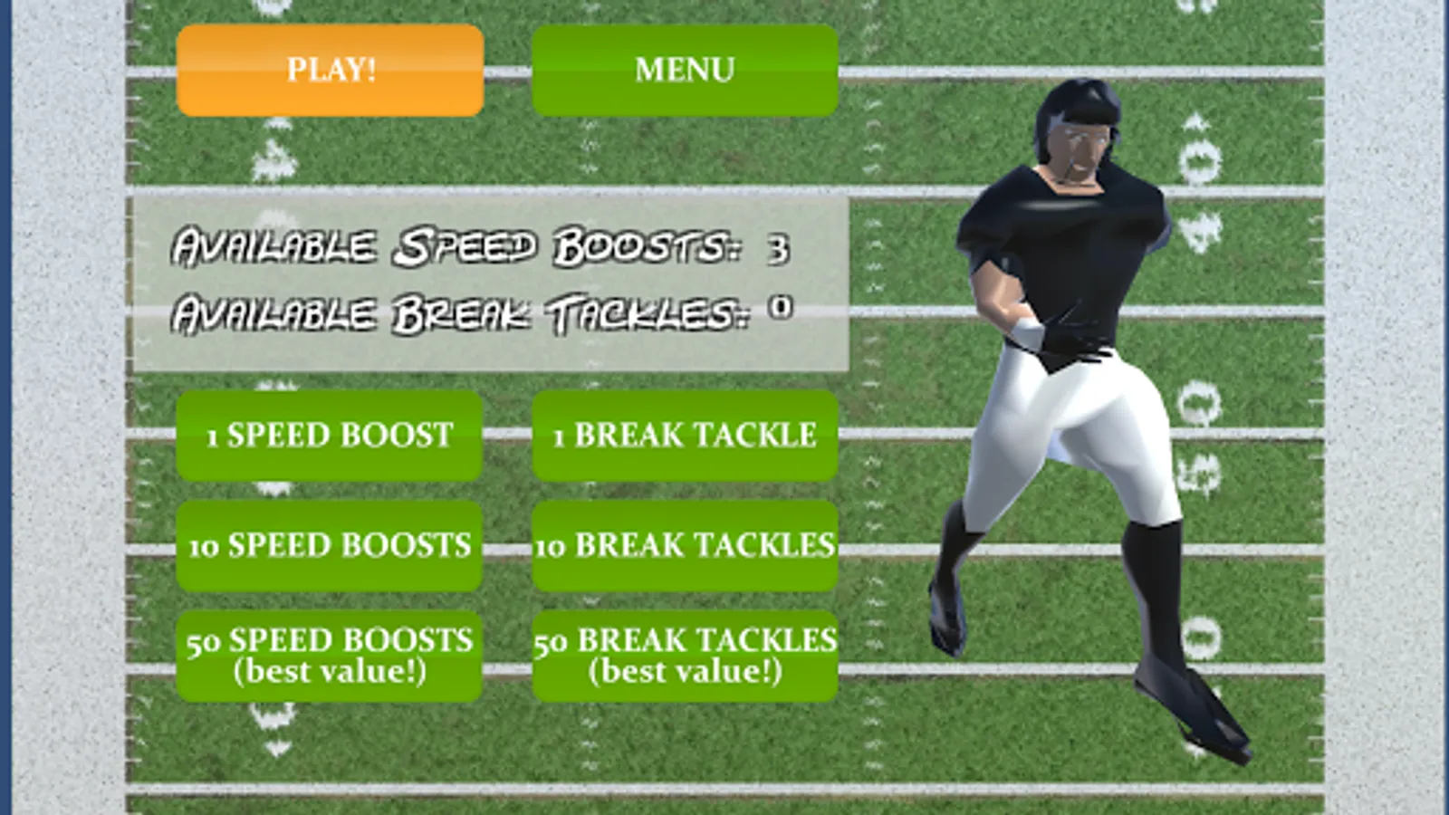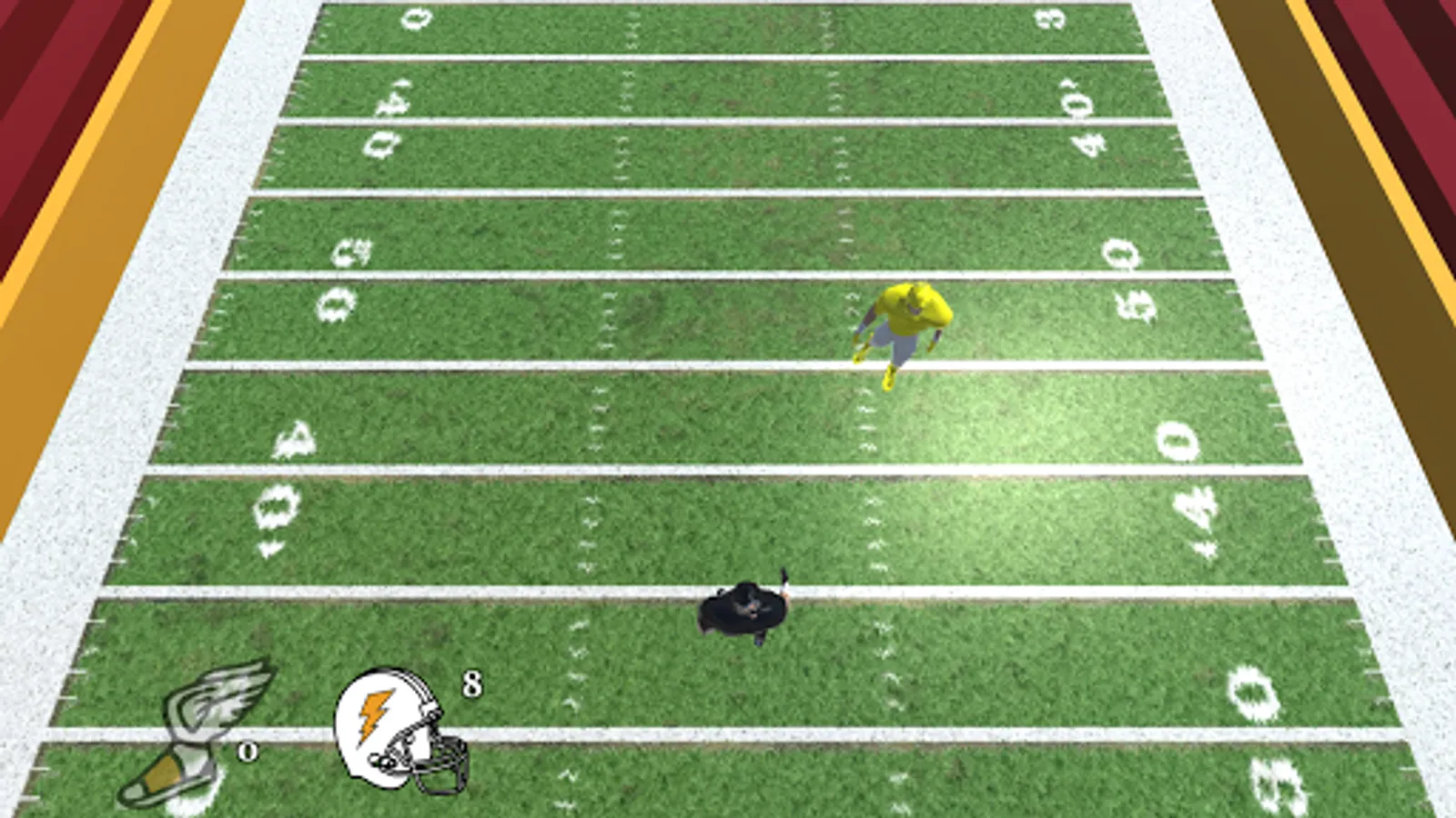 Take the role of a running back in an American football game, trying to avoid tackles and stay in-bounds for as long as possible.