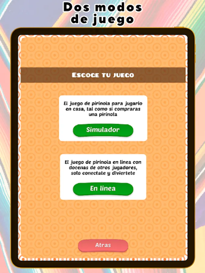 The game is made to simulate the real pirinola, that is, it is necessary to play with friends or family.