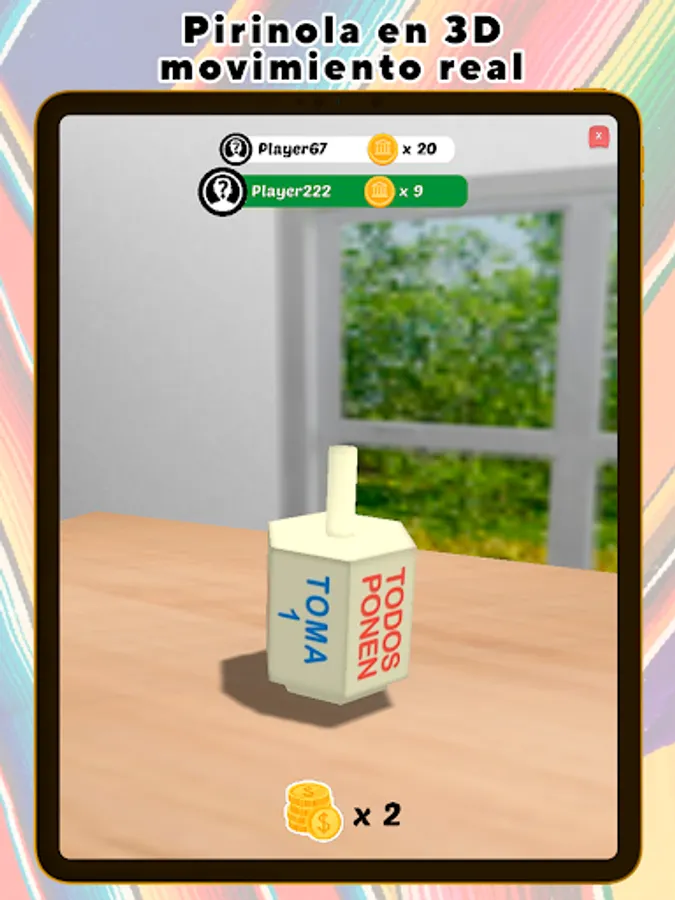 The classic pirinola that you buy in tianguis in Mexico is now here in digital form with a 3D setting.