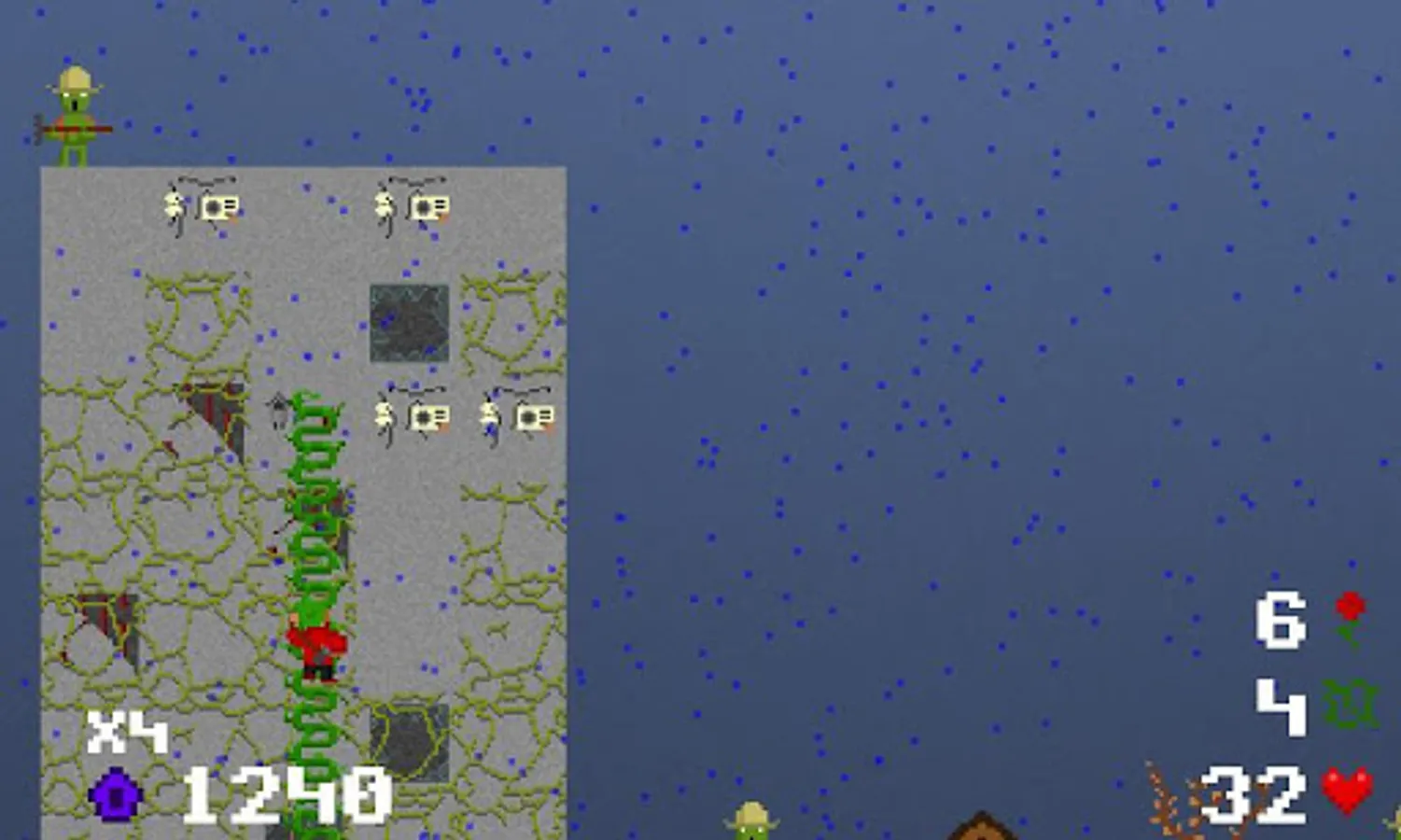 Destroy the bad thorn bushes and zombie gardeners (`Attack`). Pick up coins along the way to purchase upgrades and buy awesome new seeds. You can plant climbing vines in front of buildings to get on the roof. While climbing you can plant a new vine next to you (`Plant`) or jump of (`Attack`). You can plant a rose in between buildings to restore some health or plant a bridge plant by throwing seeds in a gap. However you have to purchase one time use seeds for those two plants. If you progress more to the right, your coin multiplier will be increased.