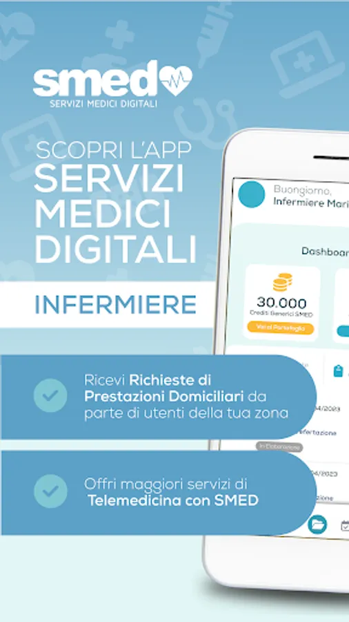 Discover the SMED – Nurse app. With SMED you can receive requests for home services from new users in your area and offer more Telemedicine services to your patients.