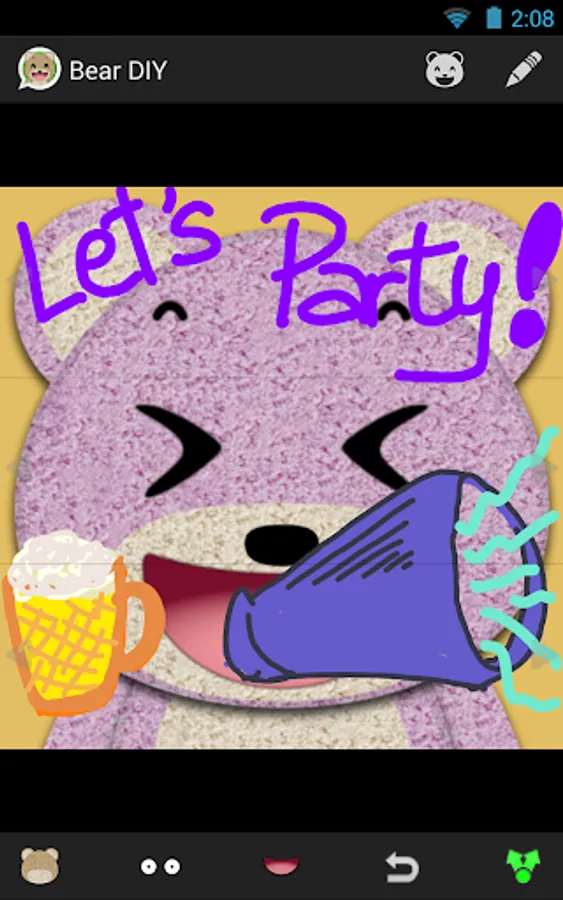 Bear DIY for Chat allows you to create your own personal Emoticon image, and share it via WhatsApp, or any other chat, messaging apps! To pick your favorite faces, eyes and mouths, you can simply swipe your finger across the screen. Rotate your phone, the Bear will be rotated. Shake your phone to create Fisheye effect to the Emoticon. Also you can unleash your inner creative genius, to draw something in your own Emoticon! It is a cool and fun way to connect with your friends!