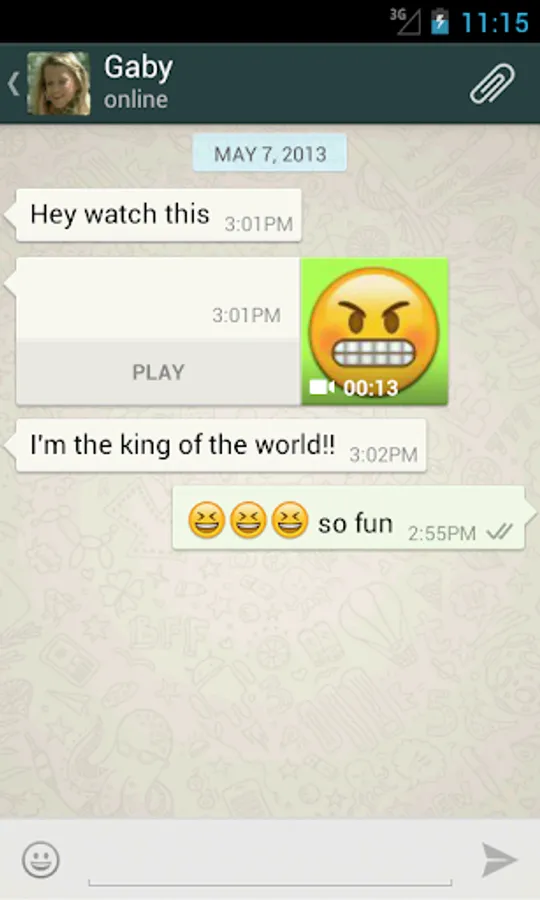 ✔ Talking Smiley can be used with any apps which supporting share video function, such as WhatsApp, Facebook, Google+, Twitter, LINE, KakaoTalk, Kik Messenger, Yahoo! Messenger, WeChat, YouTube, Email