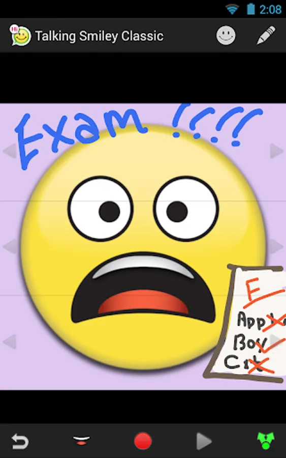 Talking Smiley Classic allows you to create your own personal Emoticon video, and share it via WhatsApp, or any other chat, messaging apps! Smiley Classic repeats everything you say and can be recorded to video. To pick your favorite faces, eyes and mouths, you can simply swipe your finger across the screen. Also you can unleash your inner creative genius, to draw something in your own Emoticon! It is a cool and fun way to connect with your friends!