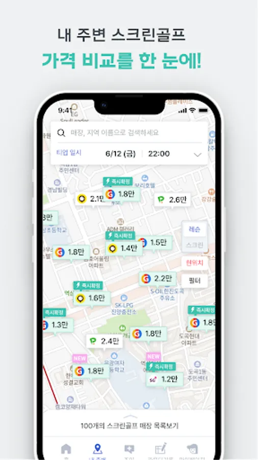 - Find prices, facilities, photo information, and reviews of screen golf stores near you at a glance on the map.