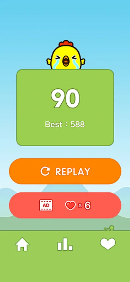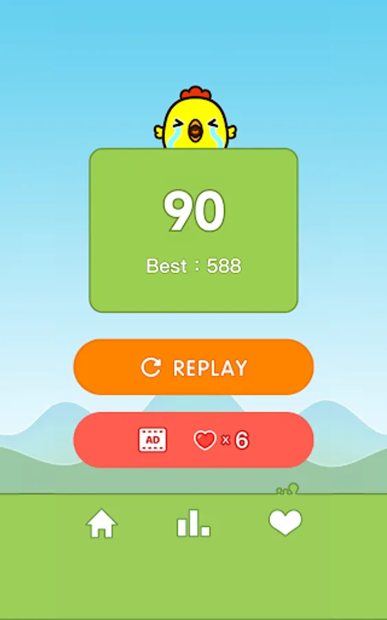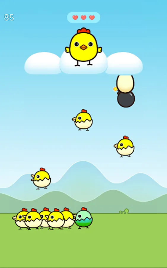 The flappy chicken will lay eggs which will be falling down to the ground and broken. What a pity! Poor mrs chicken Molly, poor eggs... But you can save these eggs! Just touch them before they hit the ground! The eggs will hatch little chicks. What a happy time!