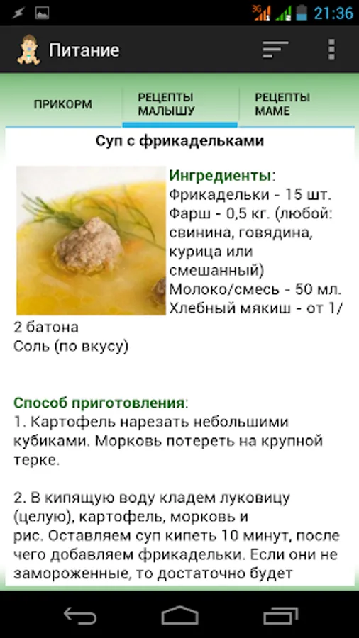 - Nutrition: selection of complementary foods with tracking the reaction of the body, a menu for kids (including children with special nutritional needs) and mom. Also includes a directory of food allergens.