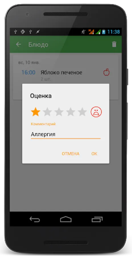 C "Rotational power diary" does not need to be installed reminding in the phone and counting the calendar days - the application will automatically add the product to the menu after a specified time interval. Also for each dish, there is the opportunity to indicate, if necessary, an allergic reaction and put an estimate.