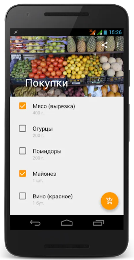 ✓ the ability to send a shopping list and a finished menu via email, through an installed social network client, Skype, Viber, WhatsApp, etc.