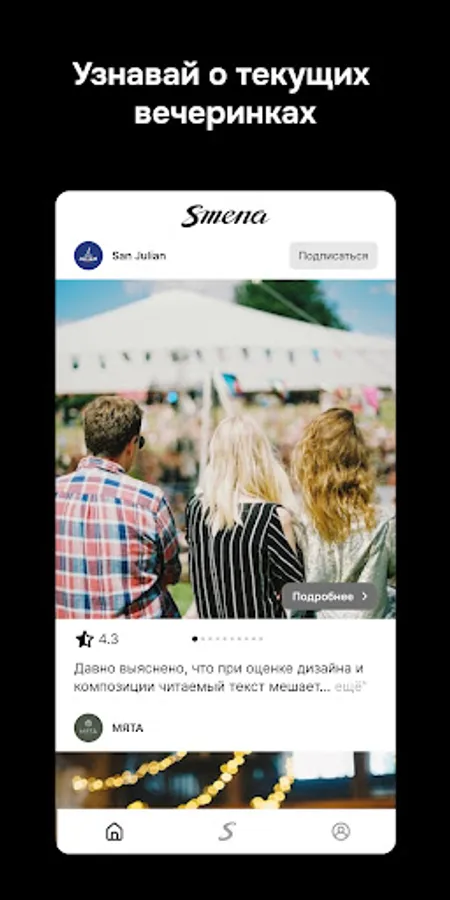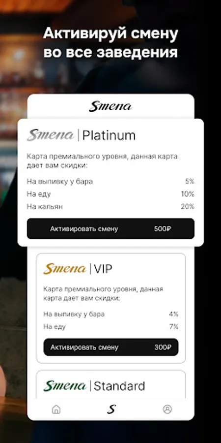 It is much easier for SMENA users to choose establishments according to their preferences and receive unique bonuses, promotions and Yakt discounts.