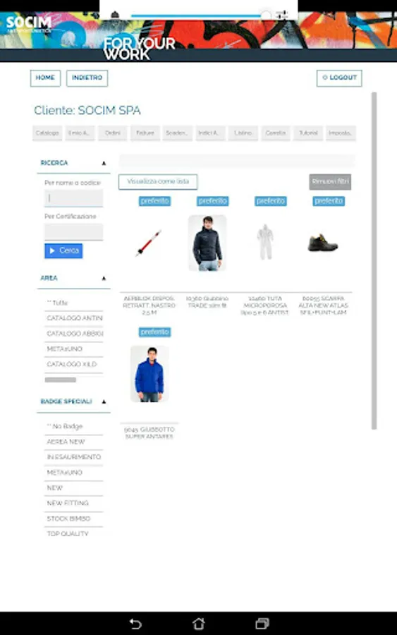 The SOCIM application is aimed at all retailers in the accident prevention and promotional sector, who after having placed the first order, have obtained accreditation for access to the reserved area of the site www.socim.it