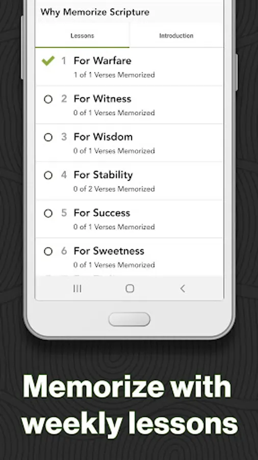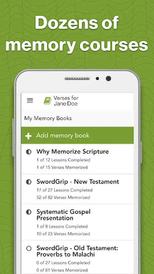 Each memory book includes a collection of pre-selected memory verses, along with devotional commentary and application questions. You'll be given free access to the first three lessons of any memory book just for downloading the Scripture memory app.