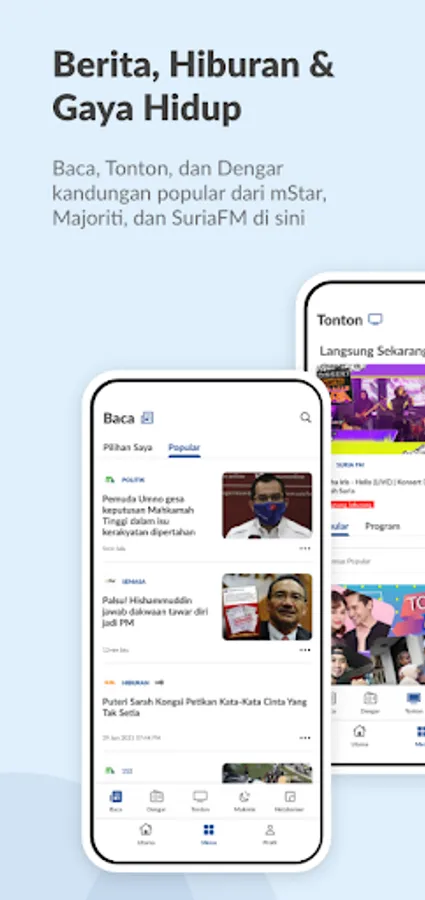 - A combination of popular content from mStar, Majority, Suria FM, and more in the future