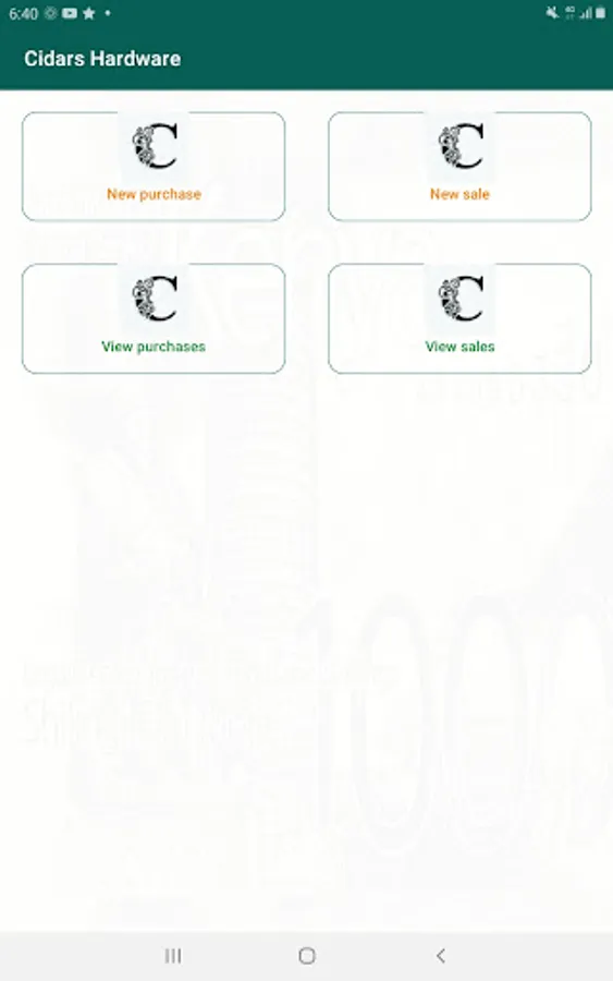 Stock managing solution for Cidars Hardware which facilitates capture of hardware stock and sales for purposes of record keeping and remote monitoring