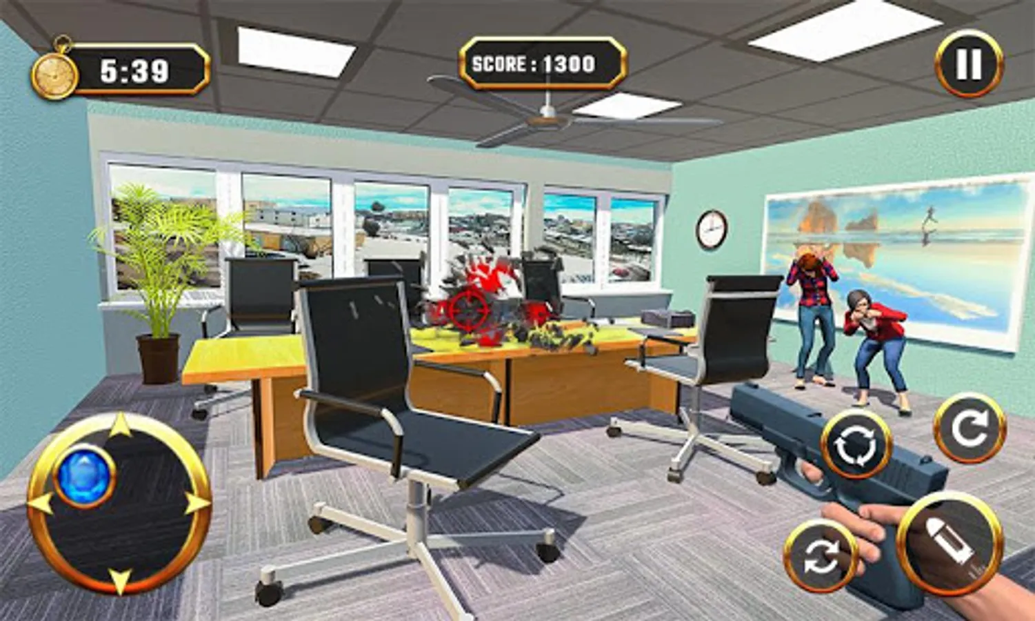 Destroy your office with multiple weapon, machine guns. Smash the office interiors with bullets.