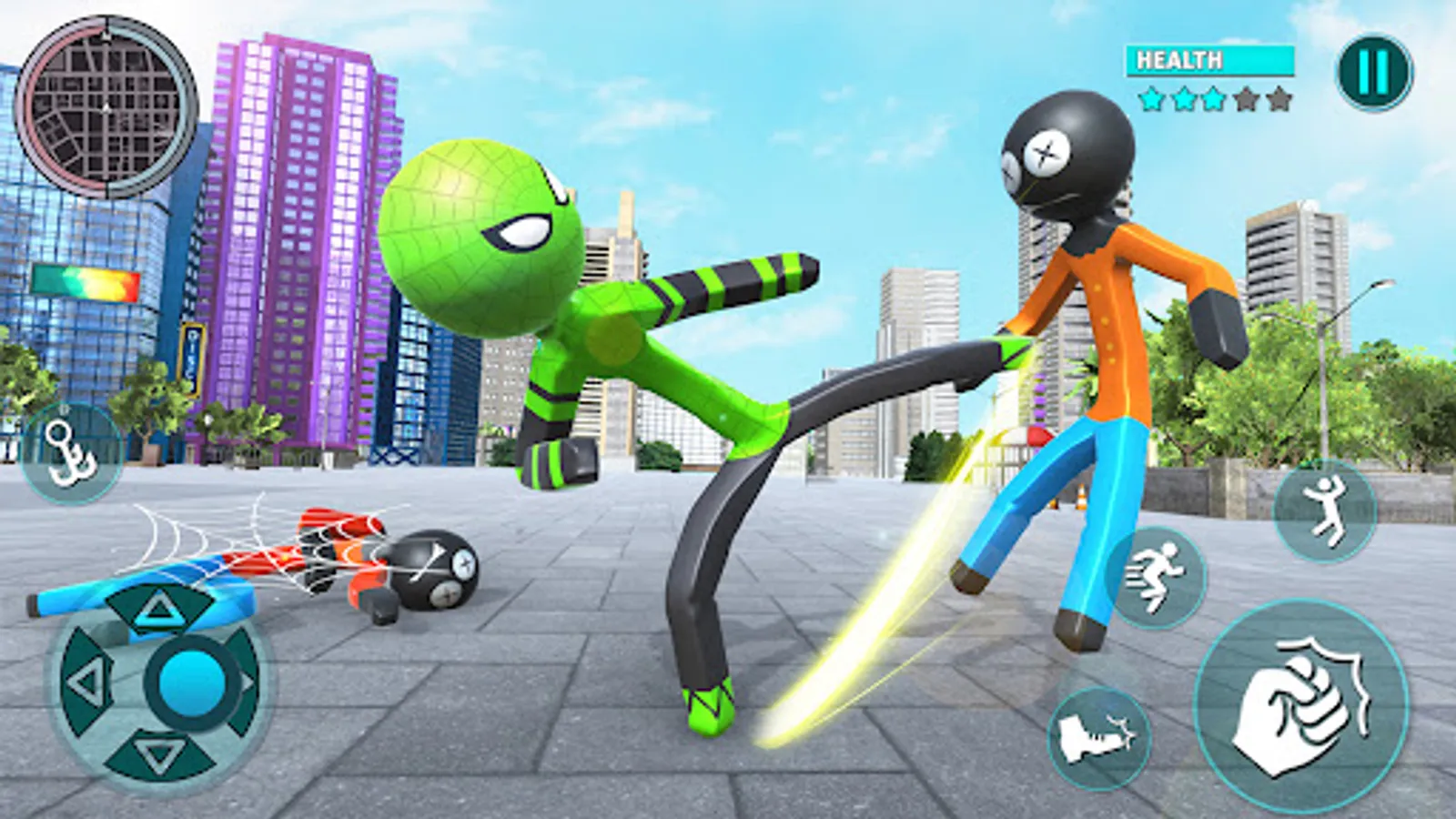 Spider rope hero stickman is jumping in the air using a rope. This superhero fight as a warrior and beat the gangster and giant monster in this grand gangster Vegas city games. Show rope hero shooting skills and stop all the villains standing in your way. Use firearms, machine gun, and weapons to fight bad guys. Crime city rope heroes defeat enemies and stop their illegal activities from the street of grand city. Beat the bad guys in this mafia gangster using your rope hero-building climbing styles. Grand city makes you run like a speedster in rope hero in ninja frog games. In gangster Vegas city, superpower spiders have to save people's life in this spider rope hero games. Enjoy playing these spider stickman combat skills in this alliance battle.