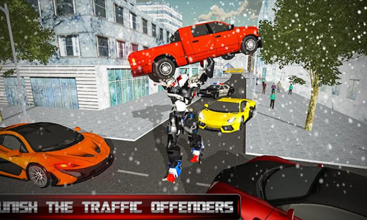 Join futuristic car cop game play US Police Transform Robot Car: Real Snow City to stop your rivals in this futuristic police robots war.