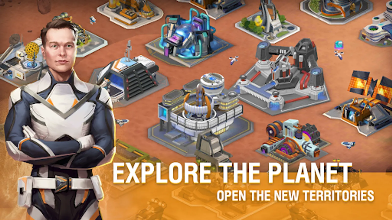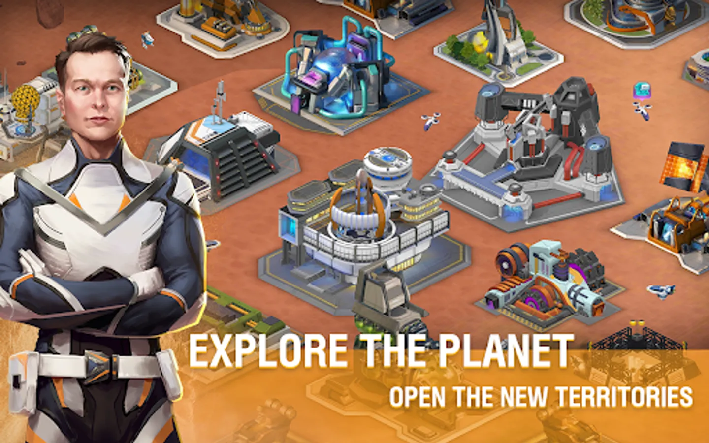 Build facilities. Use the unique natural resources of the planet and the most advanced robots!