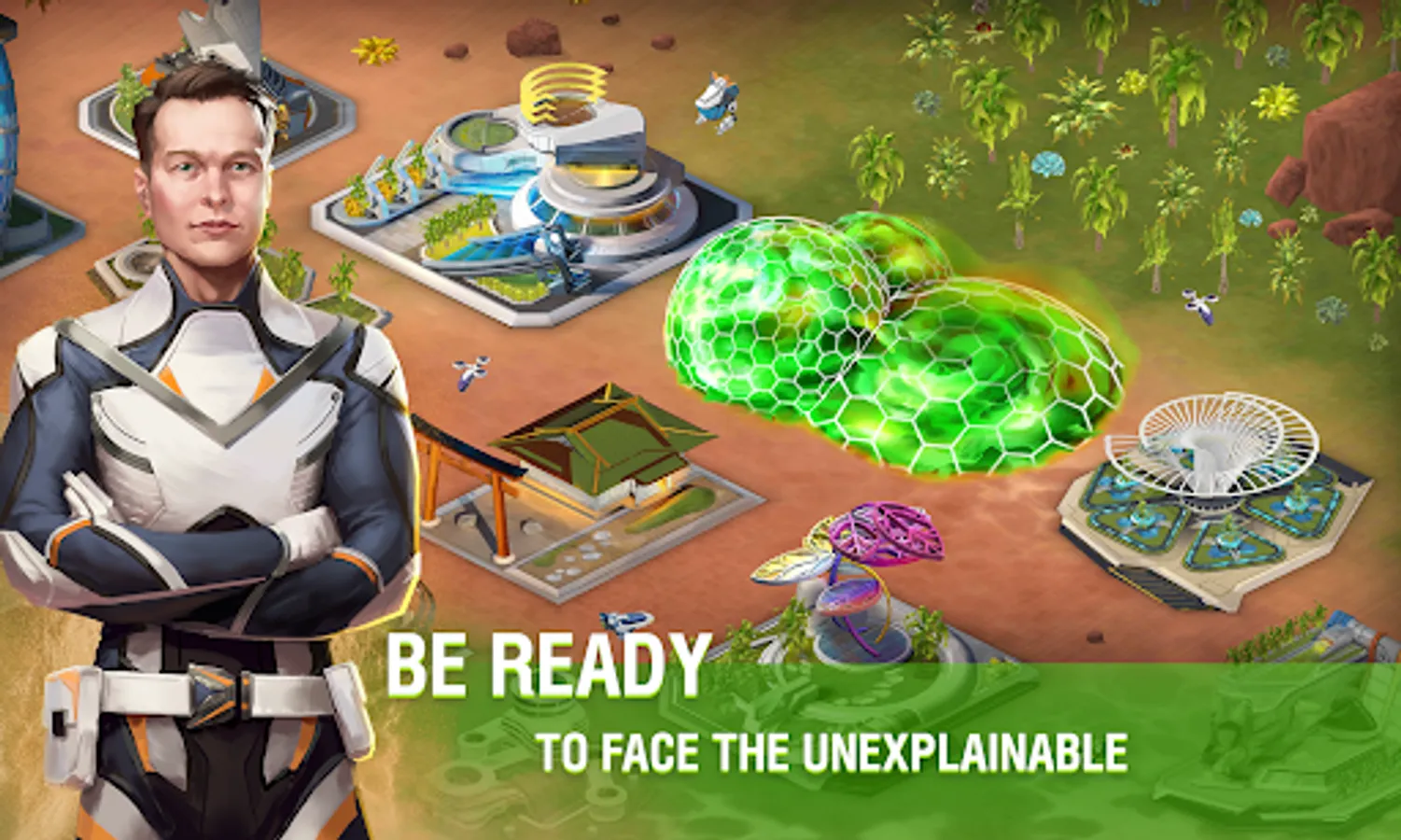 Transform the planet. Use the objects available - glaciers, craters, Martian river beds - to create structures without equals on Earth. You have more than 50 buildings to choose from. Apart from those, you will receive the unique ones in reward for participating in events and competitions. The futuristic design of the buildings lets them perfectly match the bizarre landscape of the planet.