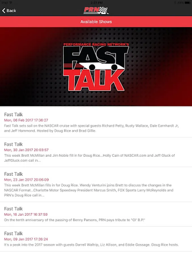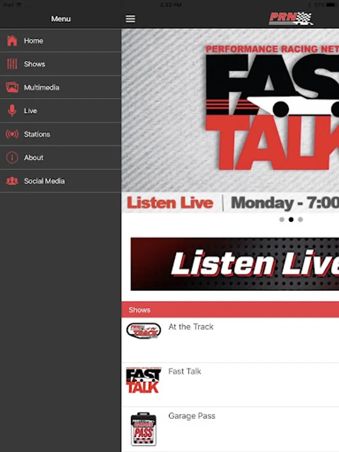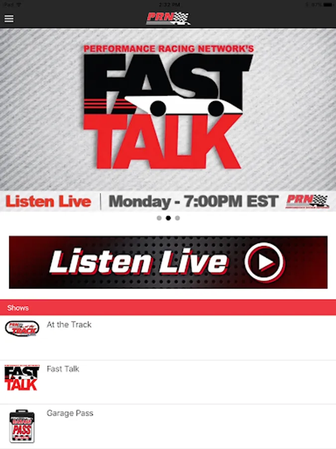 The Performance Racing Network (PRN) is one of two NASCAR licensed multi-broadcast radio networks which markets, produces and distributes motorsports programming 365 days a year. PRN broadcasts 13 Monster Energy NASCAR Cup Series races, twelve NASCAR Nationwide Series events and produces "Fast Talk", "The Pit Reporters", "Garage Pass" and "zMAX Racing Country."