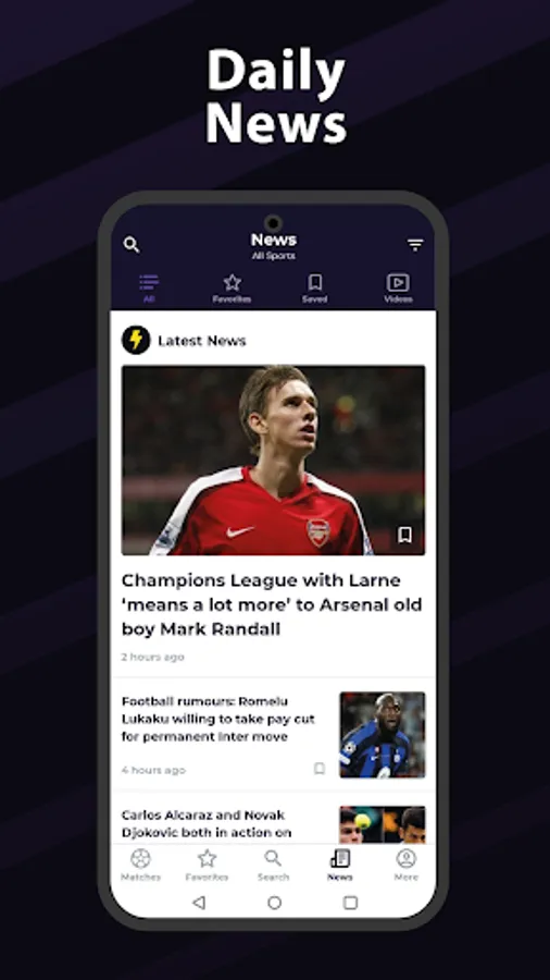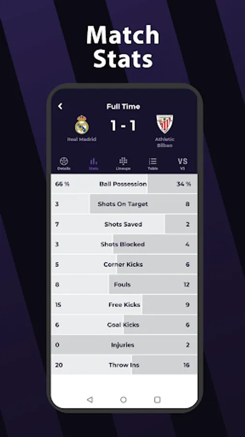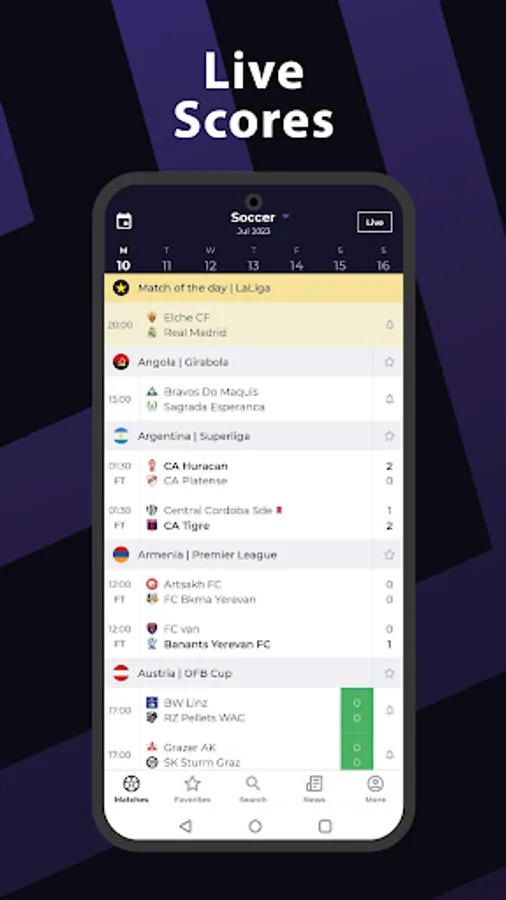 Track real-time game results and detailed game information from over 70 competitions around the world. You will also find statistics, tables, transfers, starting lineups, news and much more!