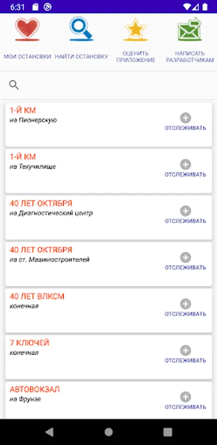 The application remembers specific stops - you don't need to search for their data again. You can only keep track of the transport you need and quickly find your stop.