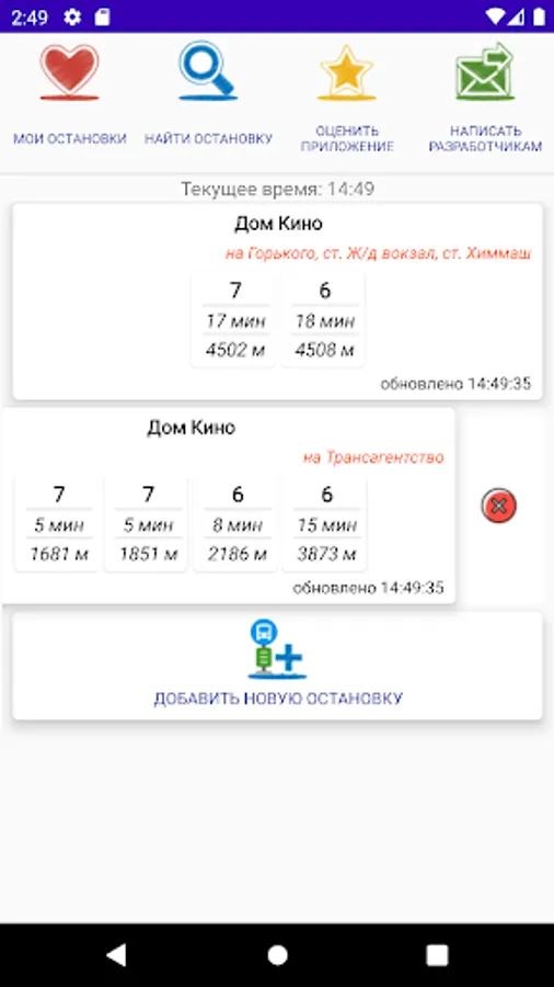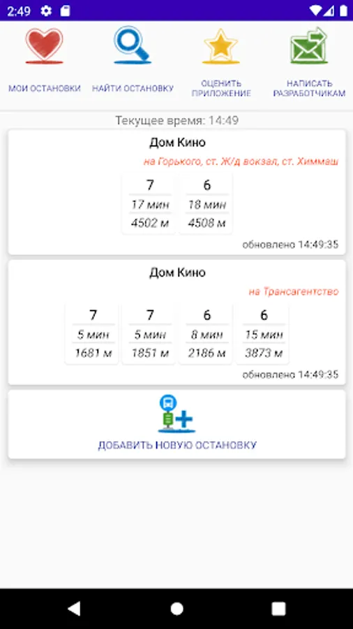 A light and fast application that shows the exact time of arrival of trolleybuses at stops in the city of Yekaterinburg.