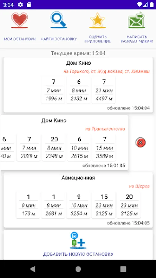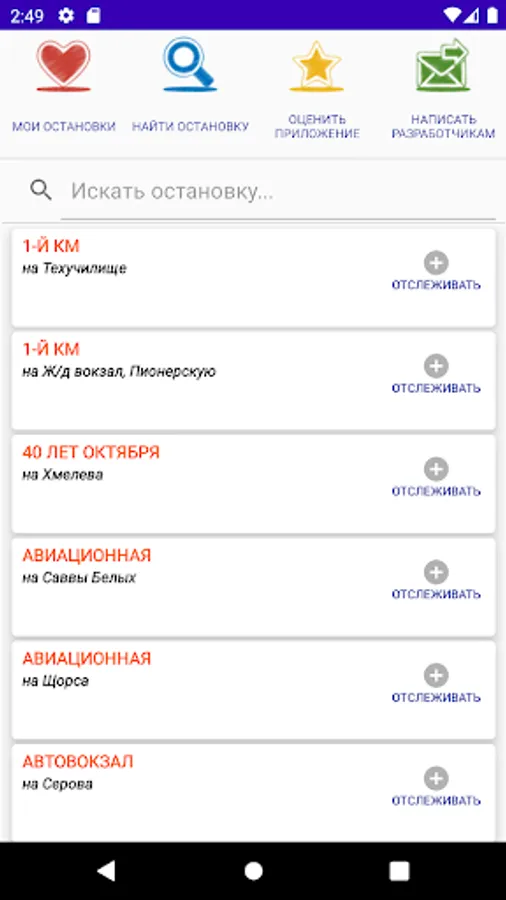 The app remembers specific stops so you don't have to look them up again. You can follow only the transport you need and quickly find your stop.
